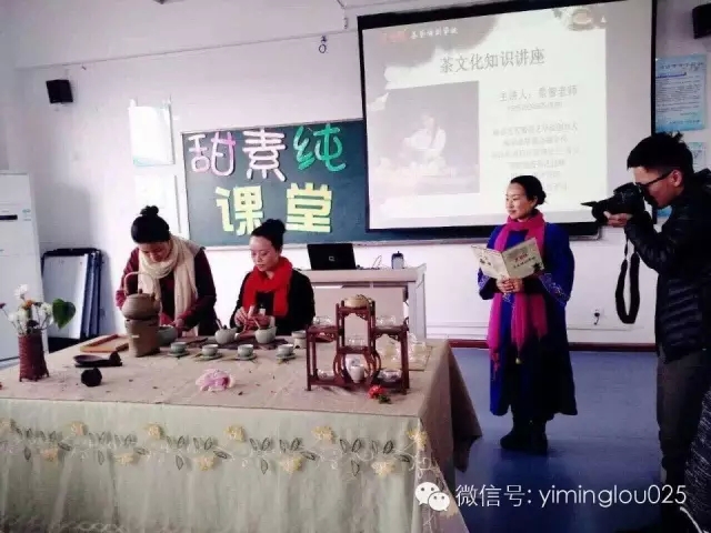 2016年3月16日下午,“甜素纯”美丽课堂在志德楼G104开讲。南京艺茗楼茶艺培训学校创办人、国家高级茶艺技师、国家一级评茶师、茶艺师考评员、南京品牌商会副会长、国际职业培训管理协会委员--景智老师,受邀为同学们做了《弘扬中国传统文化 展示中华茶艺风采》的讲座及现场茶艺表演。